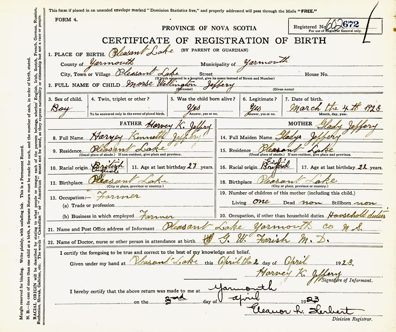 Male Birth Registration: Year: 1923 number: 60200672
