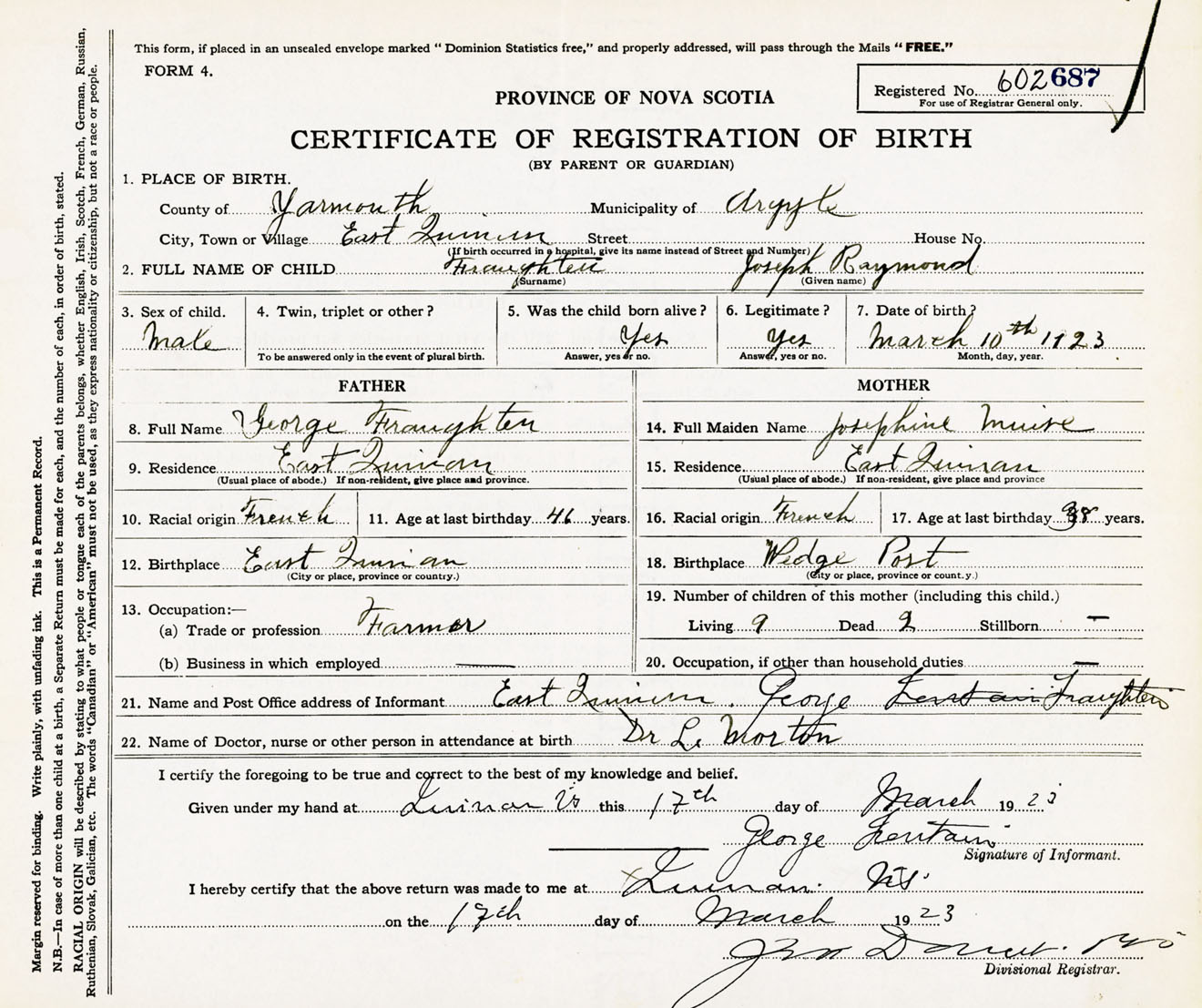 Male Birth Registration: Year: 1923 number: 60200687