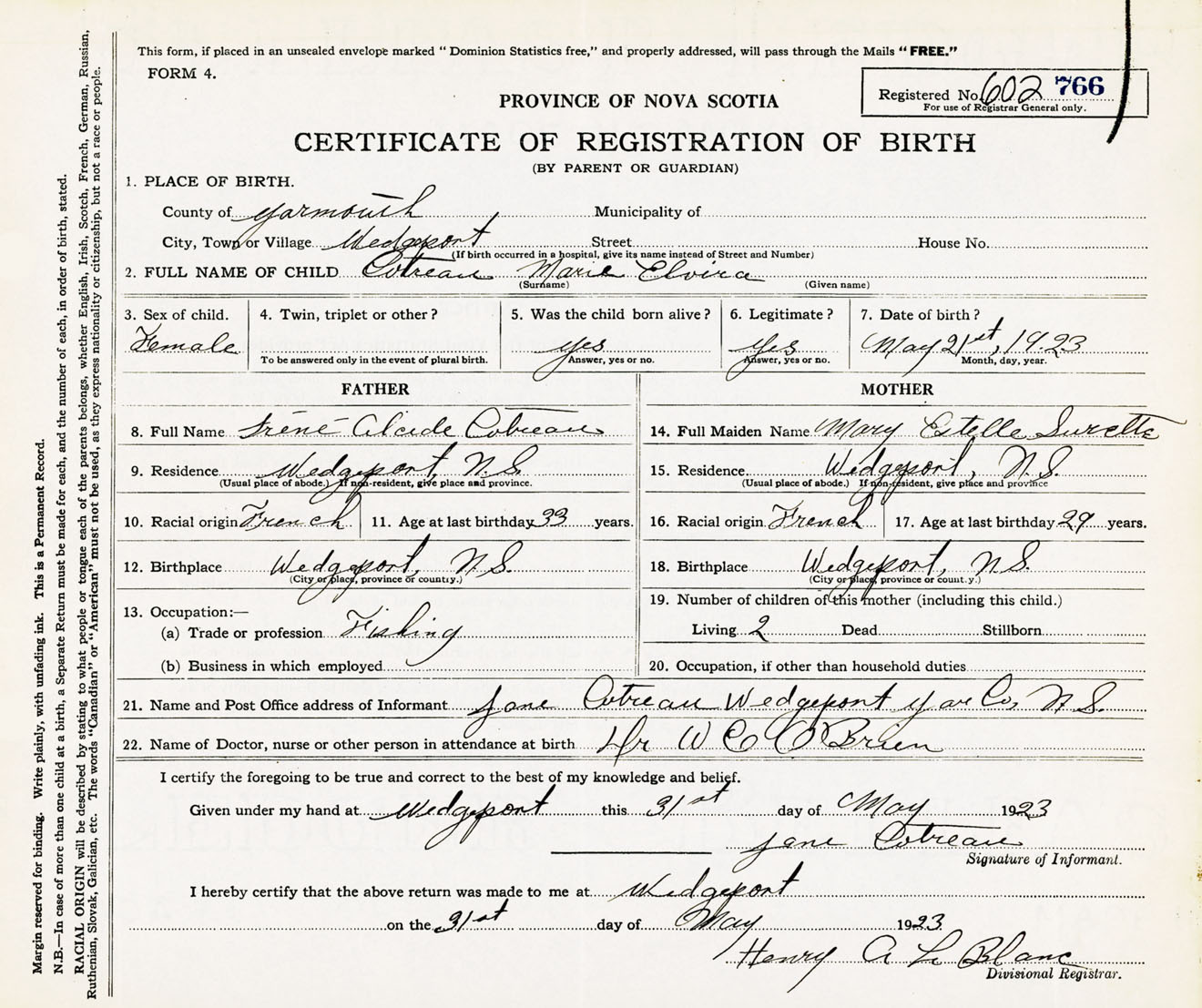 Female Birth Registration: Year: 1923 number: 60200766