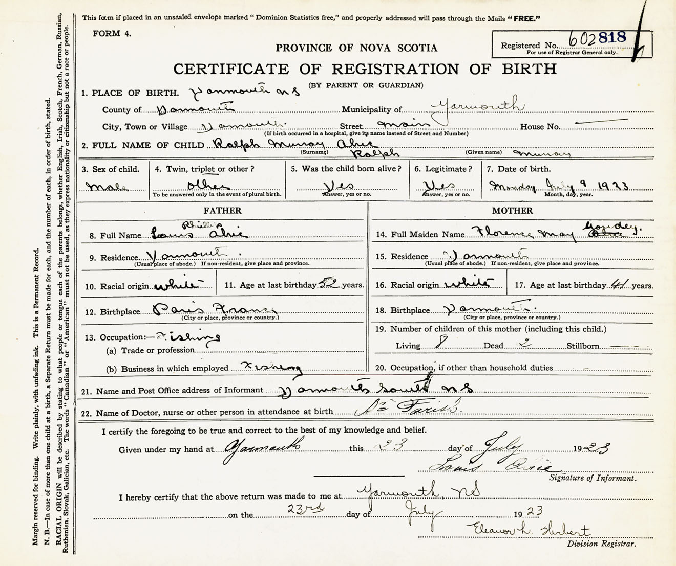 Nova Scotia Archives — https://archives.novascotia.ca/vital-statistics/birth/?ID=435602