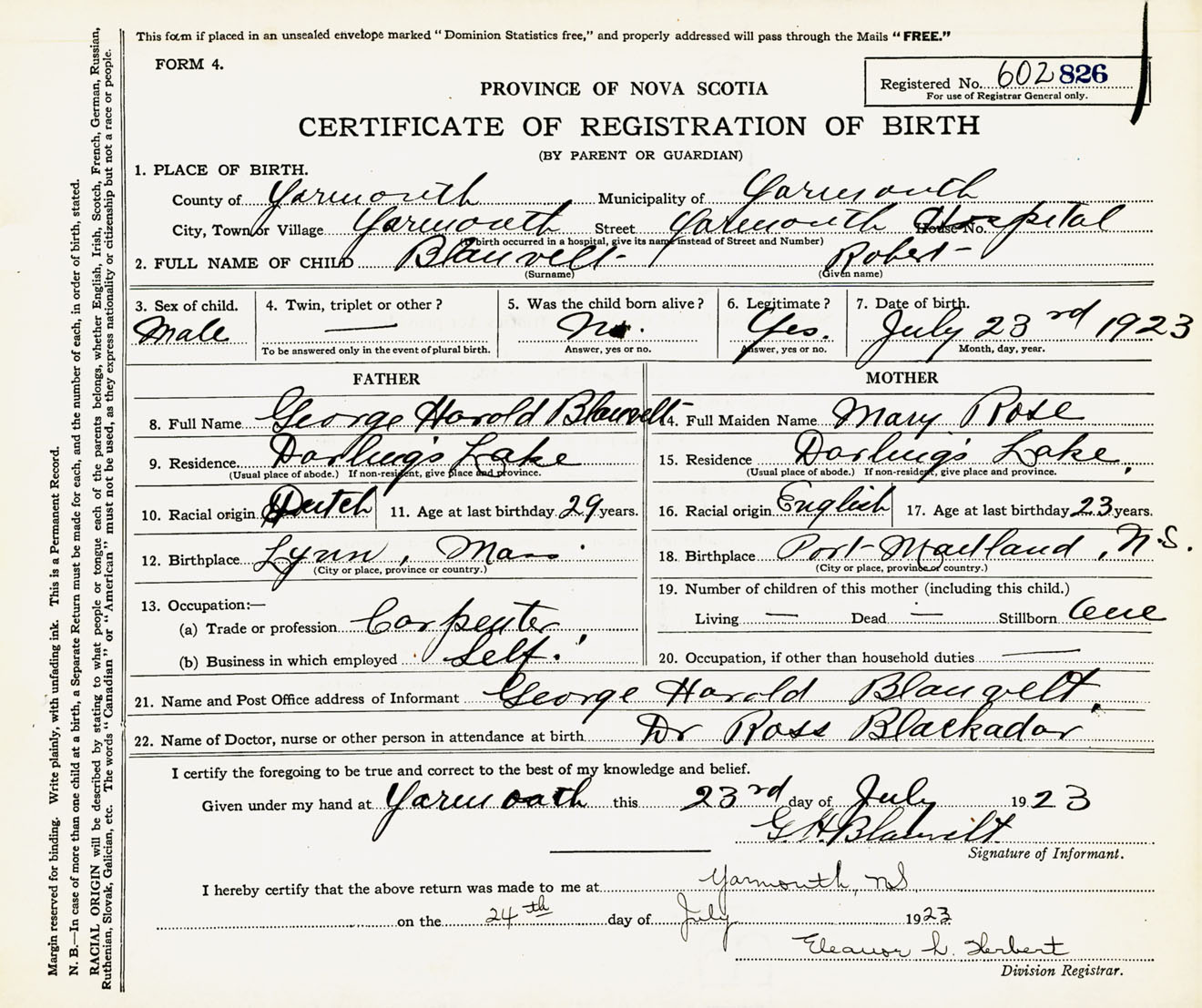 Male Birth Registration: Year: 1923 number: 60200826