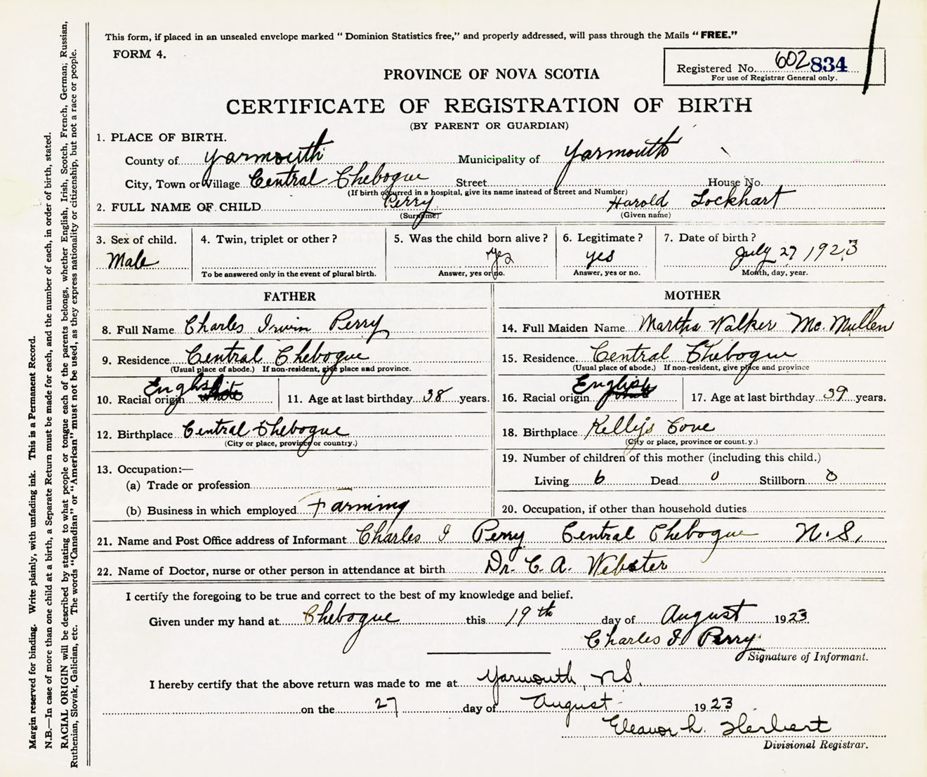 Male Birth Registration: Year: 1923 number: 60200834