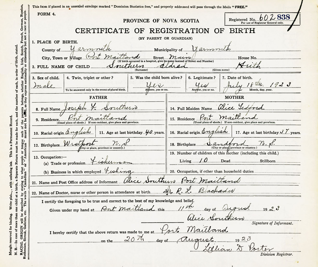 Male Birth Registration: Year: 1923 number: 60200838