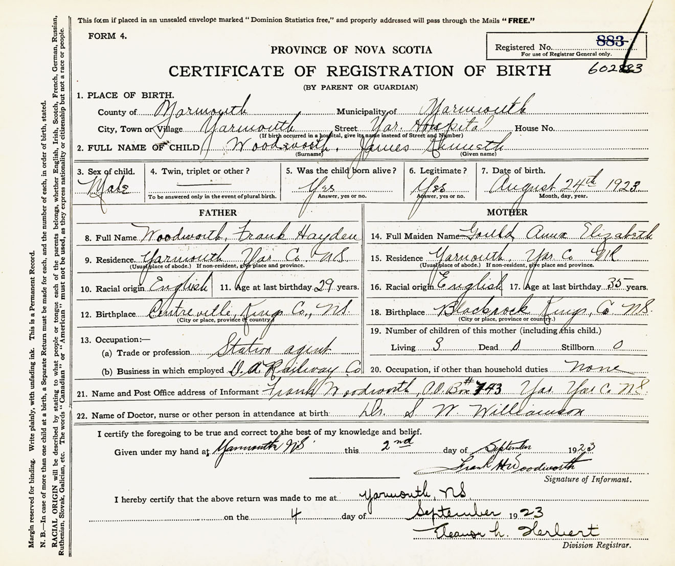 Male Birth Registration: Year: 1923 number: 60200883