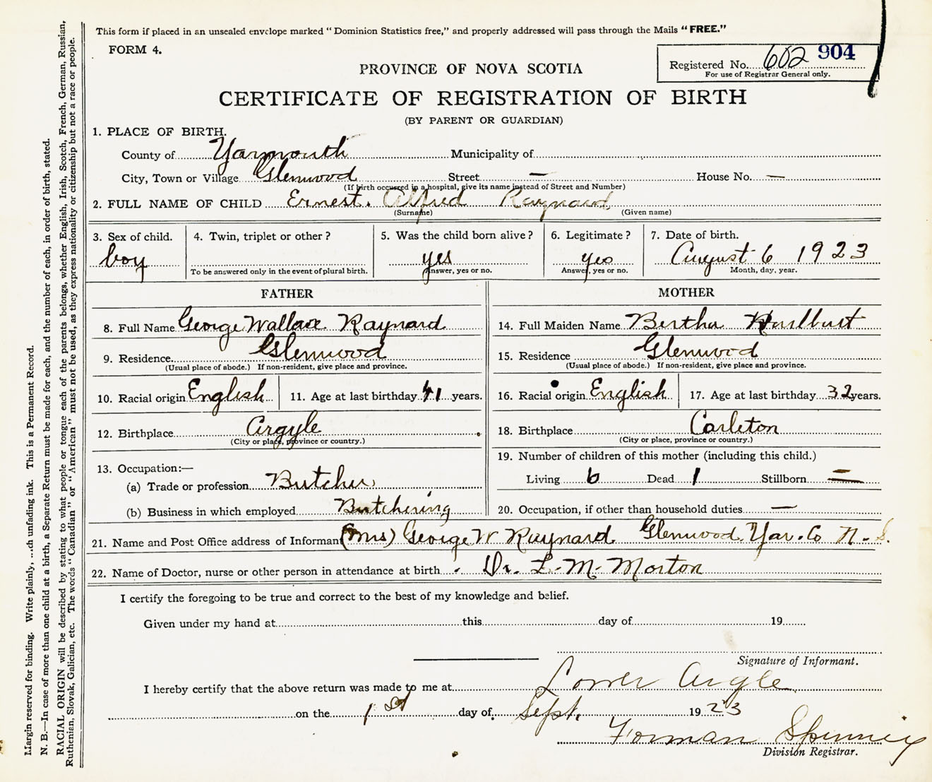 Male Birth Registration: Year: 1923 number: 60200904