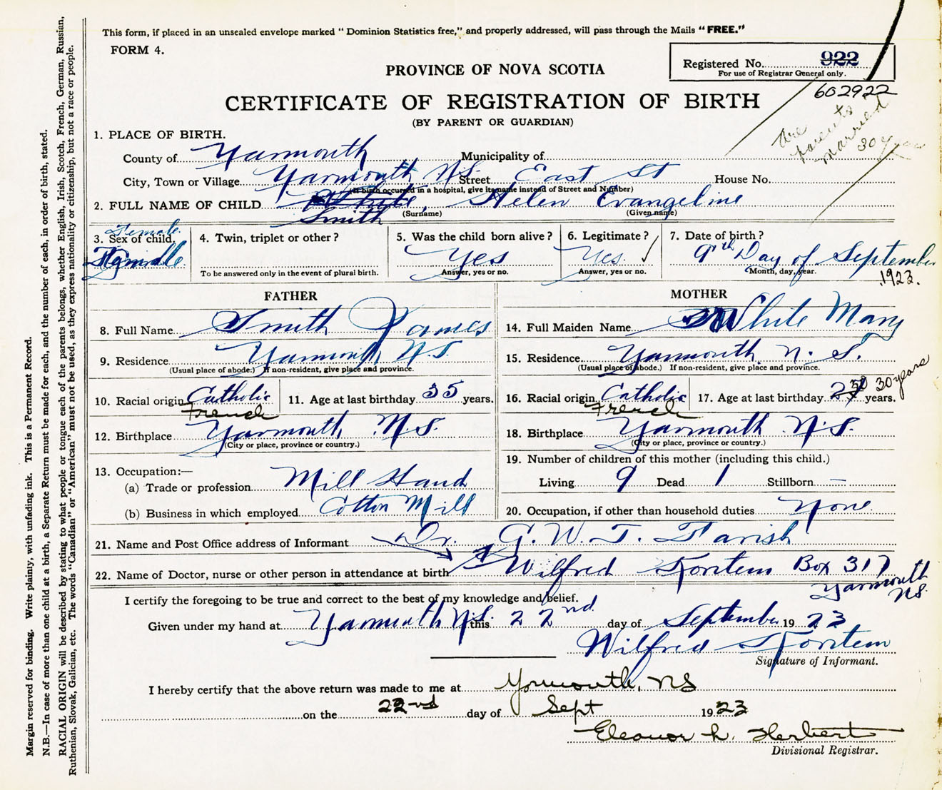 Female Birth Registration: Year: 1923 number: 60200922