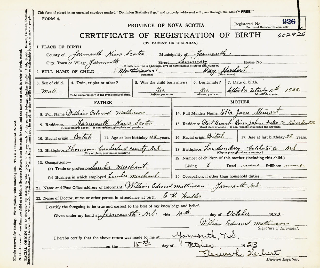 Nova Scotia Archives — https://archives.novascotia.ca/vital-statistics/birth/?ID=435710