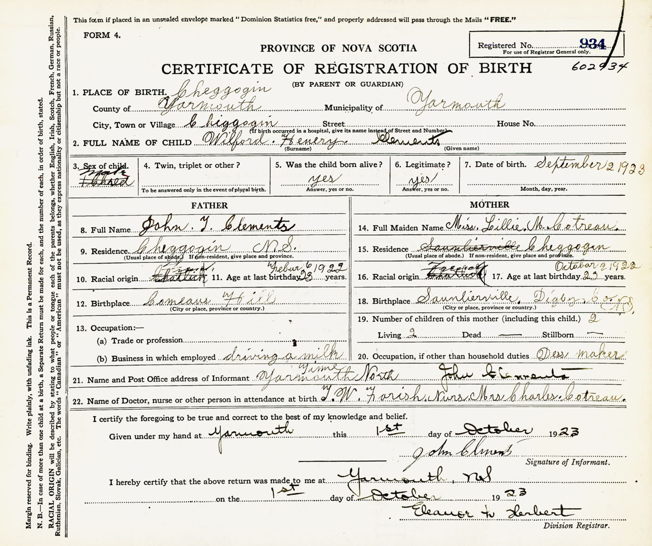 Male Birth Registration: Year: 1923 number: 60200934