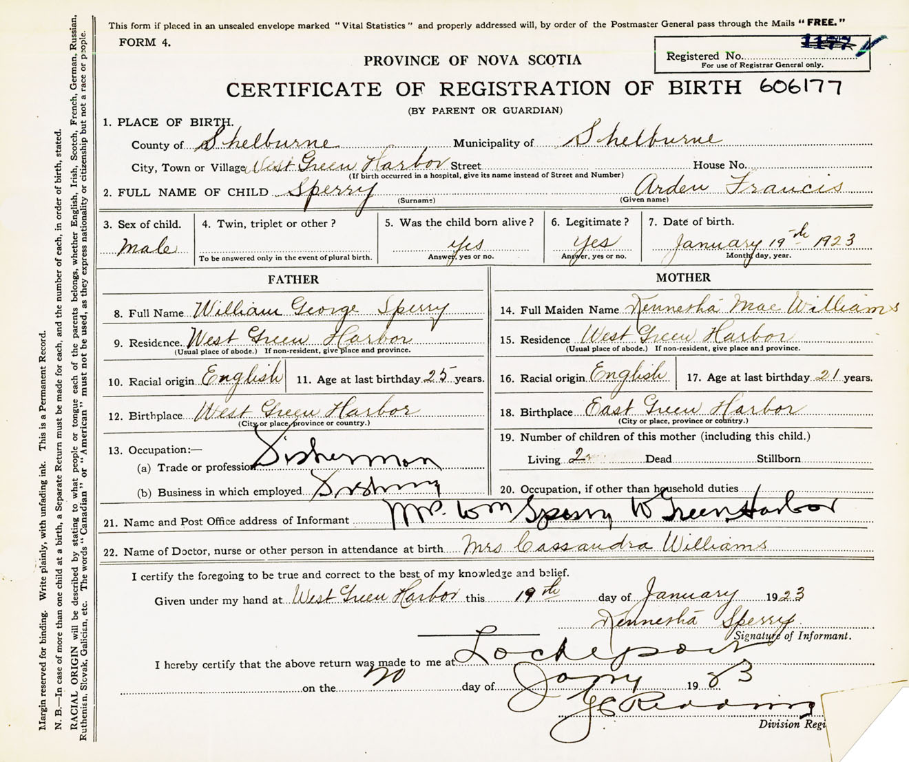 Male Birth Registration: Year: 1923 number: 60600177