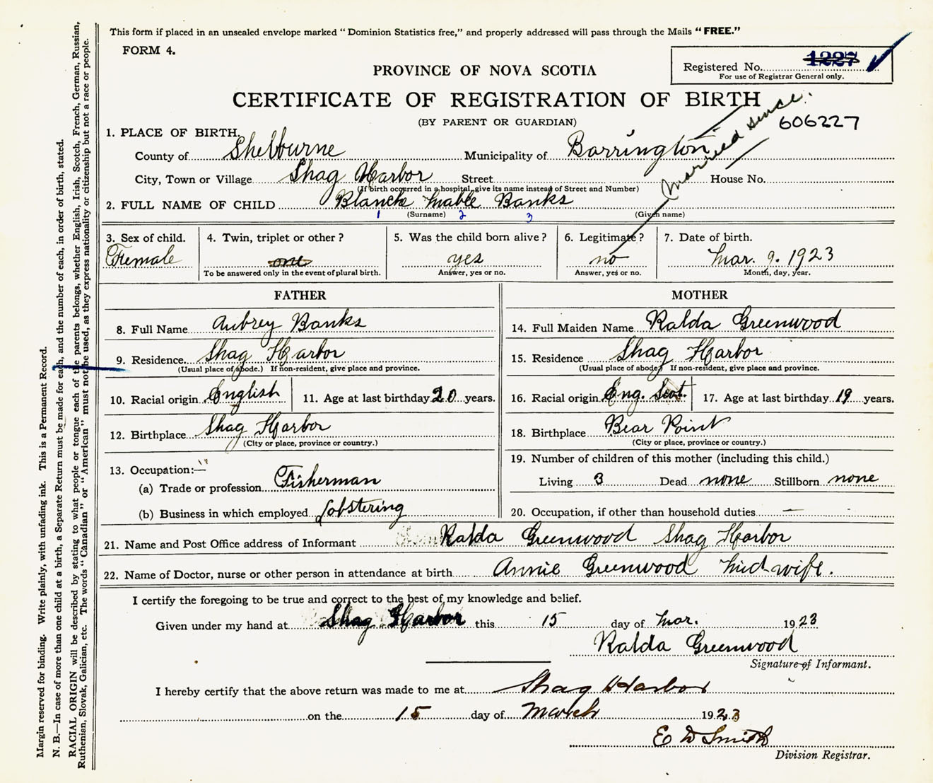 Female Birth Registration: Year: 1923 number: 60600227