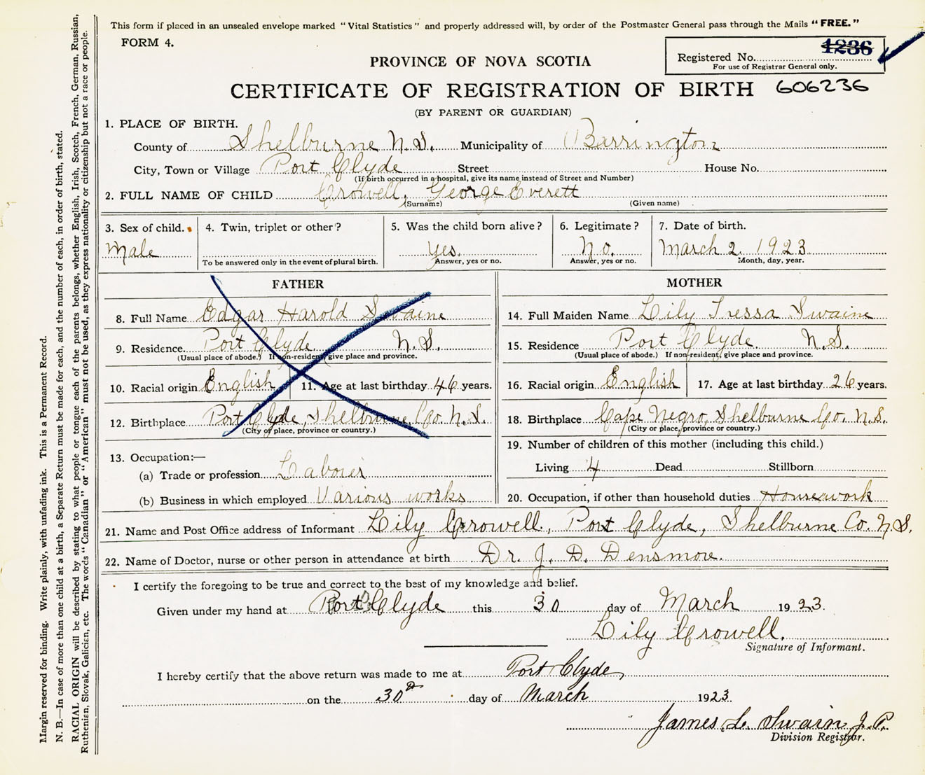 Male Birth Registration: Year: 1923 number: 60600236