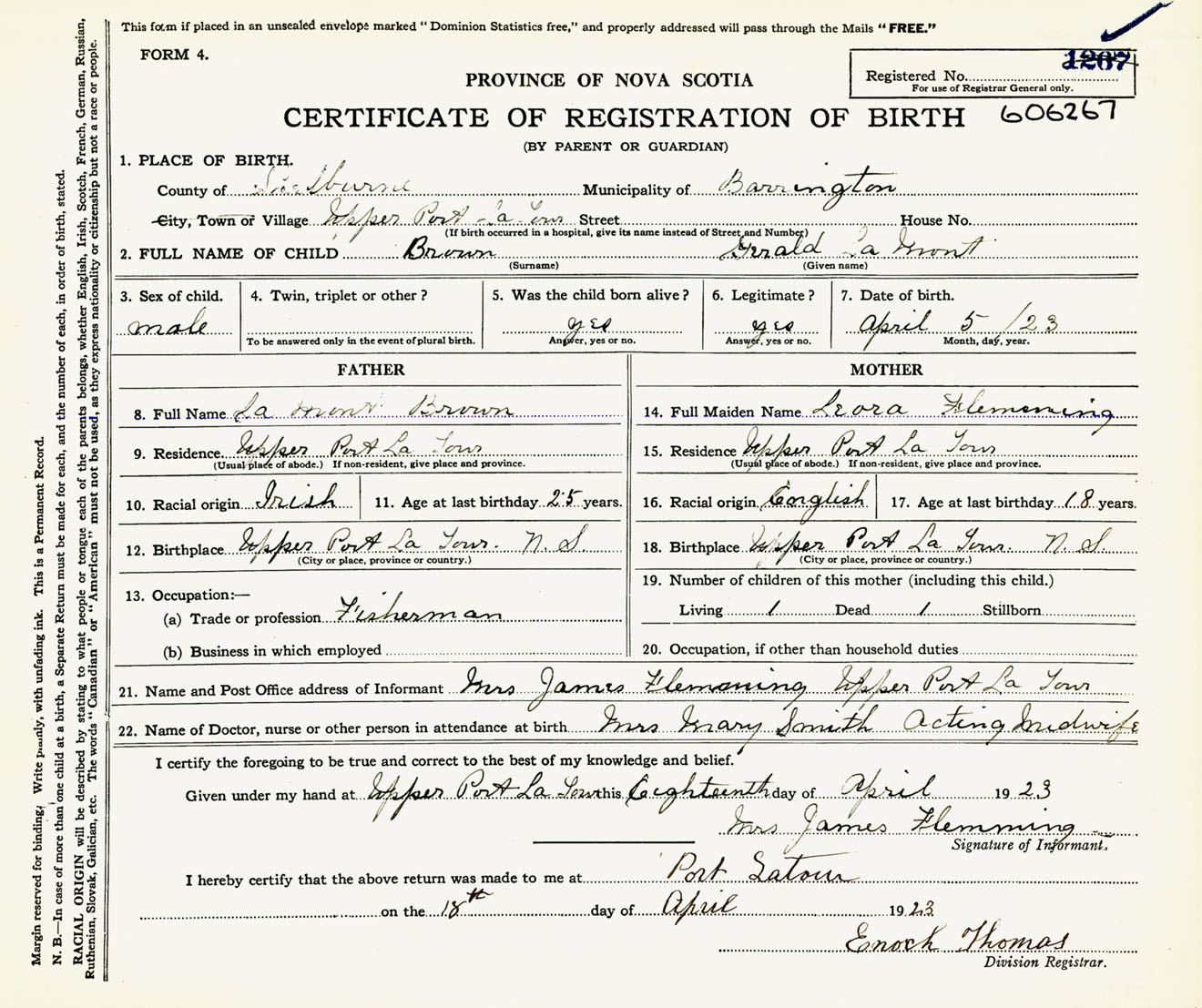 Male Birth Registration: Year: 1923 number: 60600267