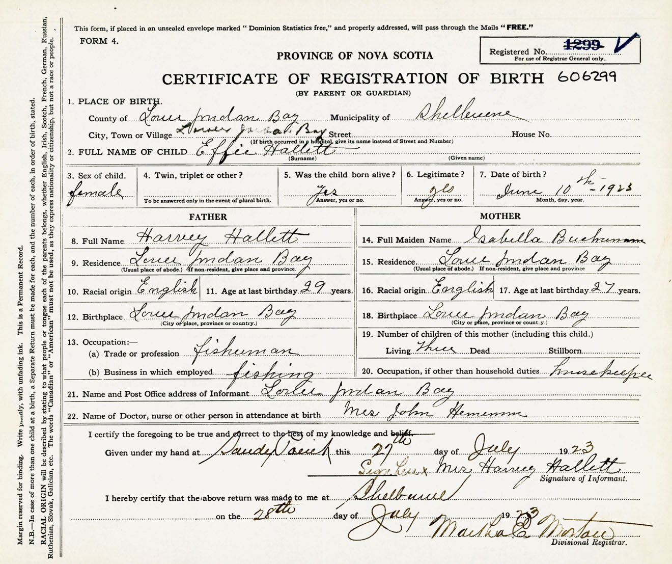 Female Birth Registration: Year: 1923 number: 60600299