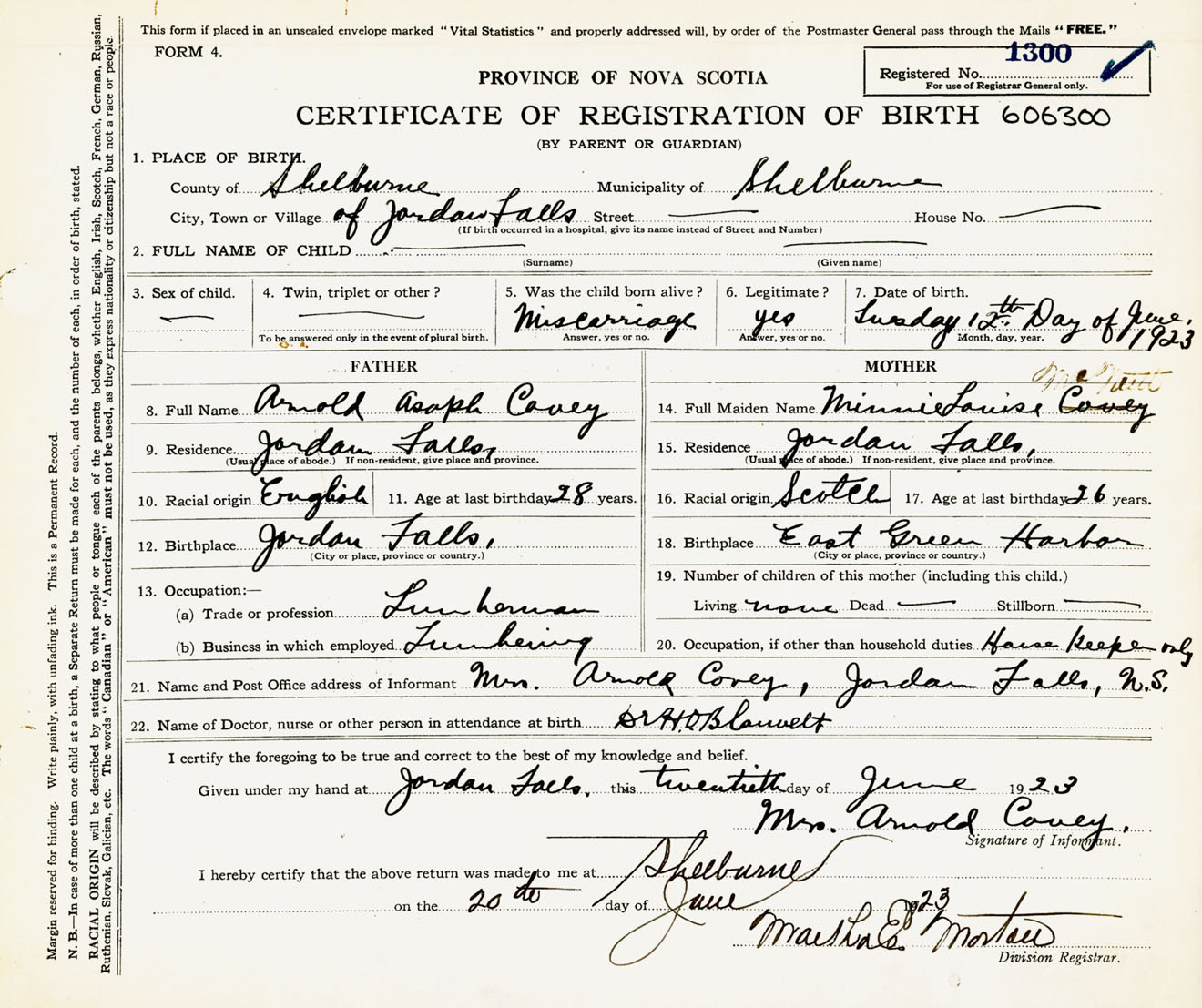 Birth Registration: Year: 1923 number: 60600300