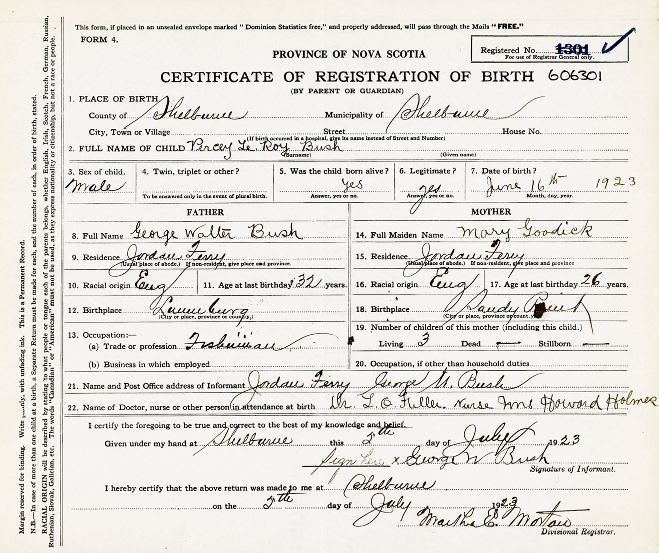 Male Birth Registration: Year: 1923 number: 60600301