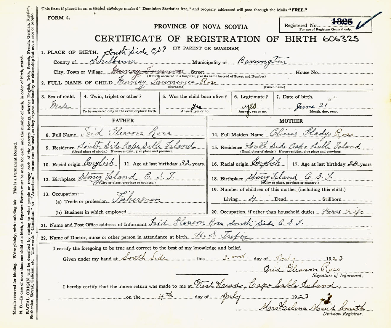 Male Birth Registration: Year: 1923 number: 60600325