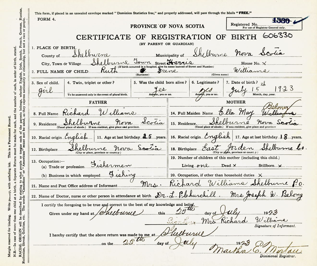 Female Birth Registration: Year: 1923 number: 60600330