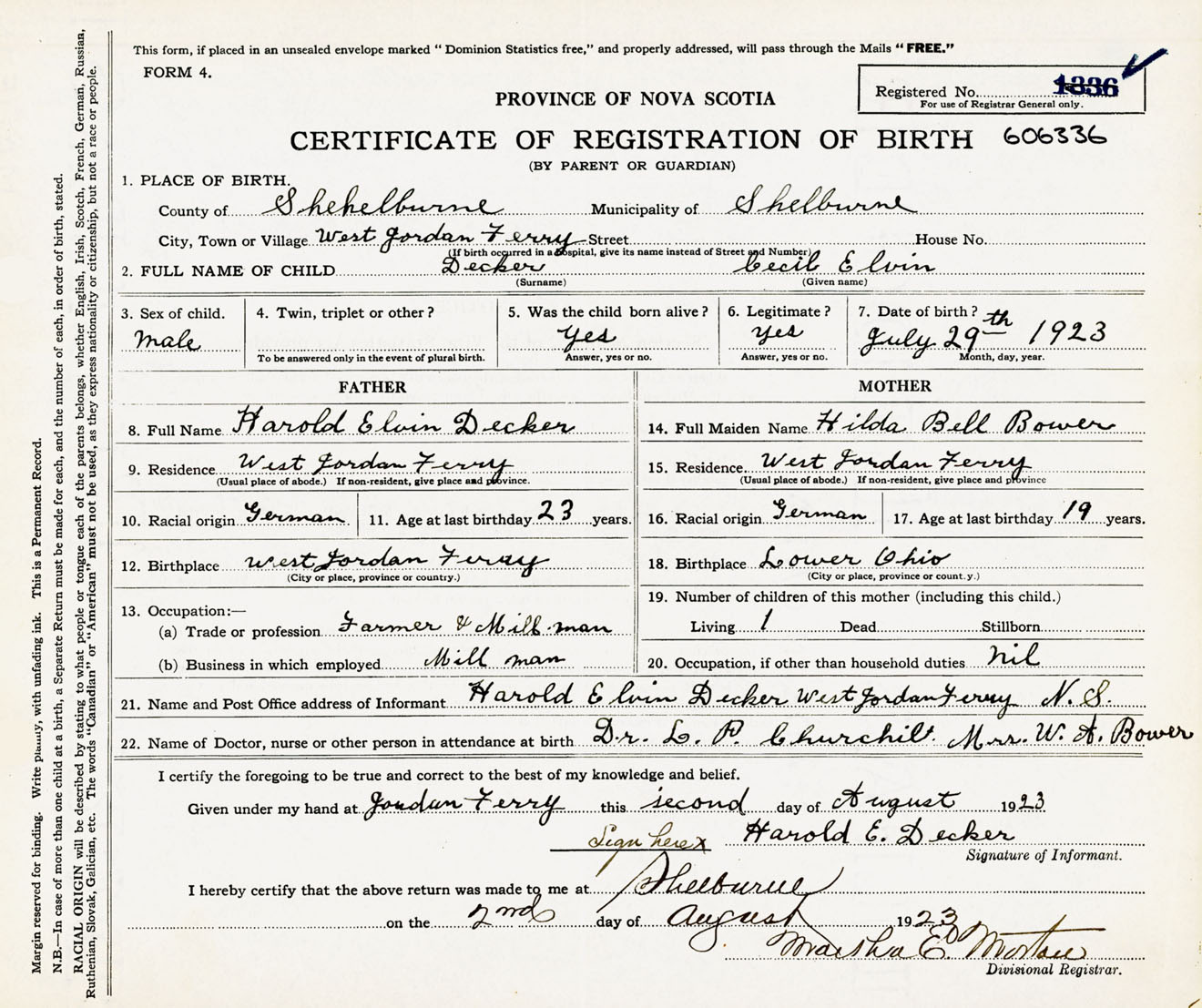 Male Birth Registration: Year: 1923 number: 60600336