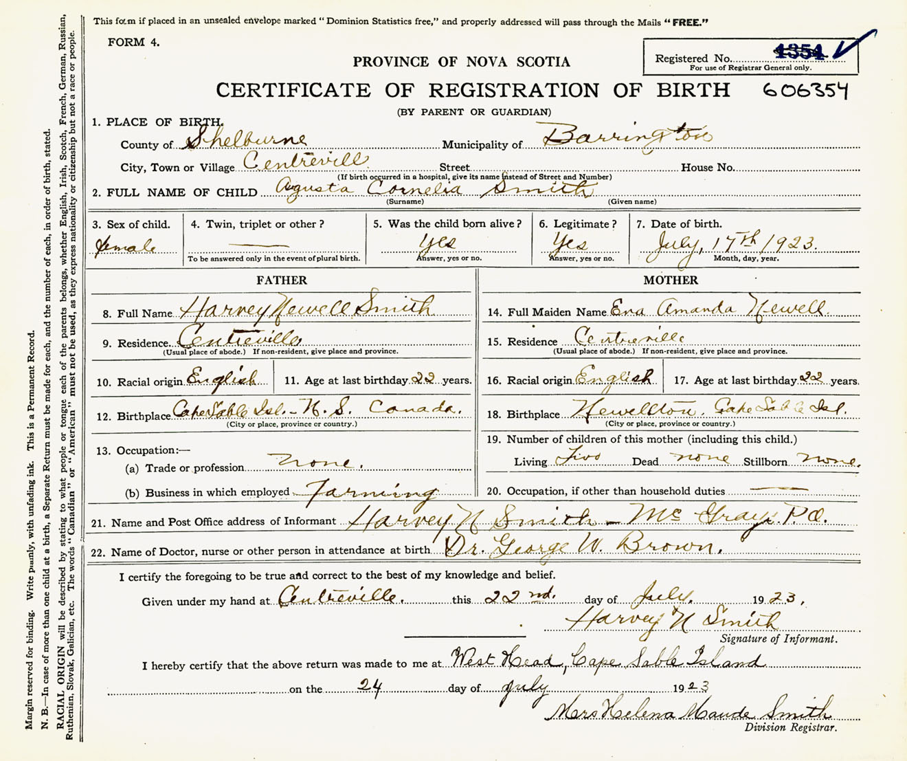 Female Birth Registration: Year: 1923 number: 60600354