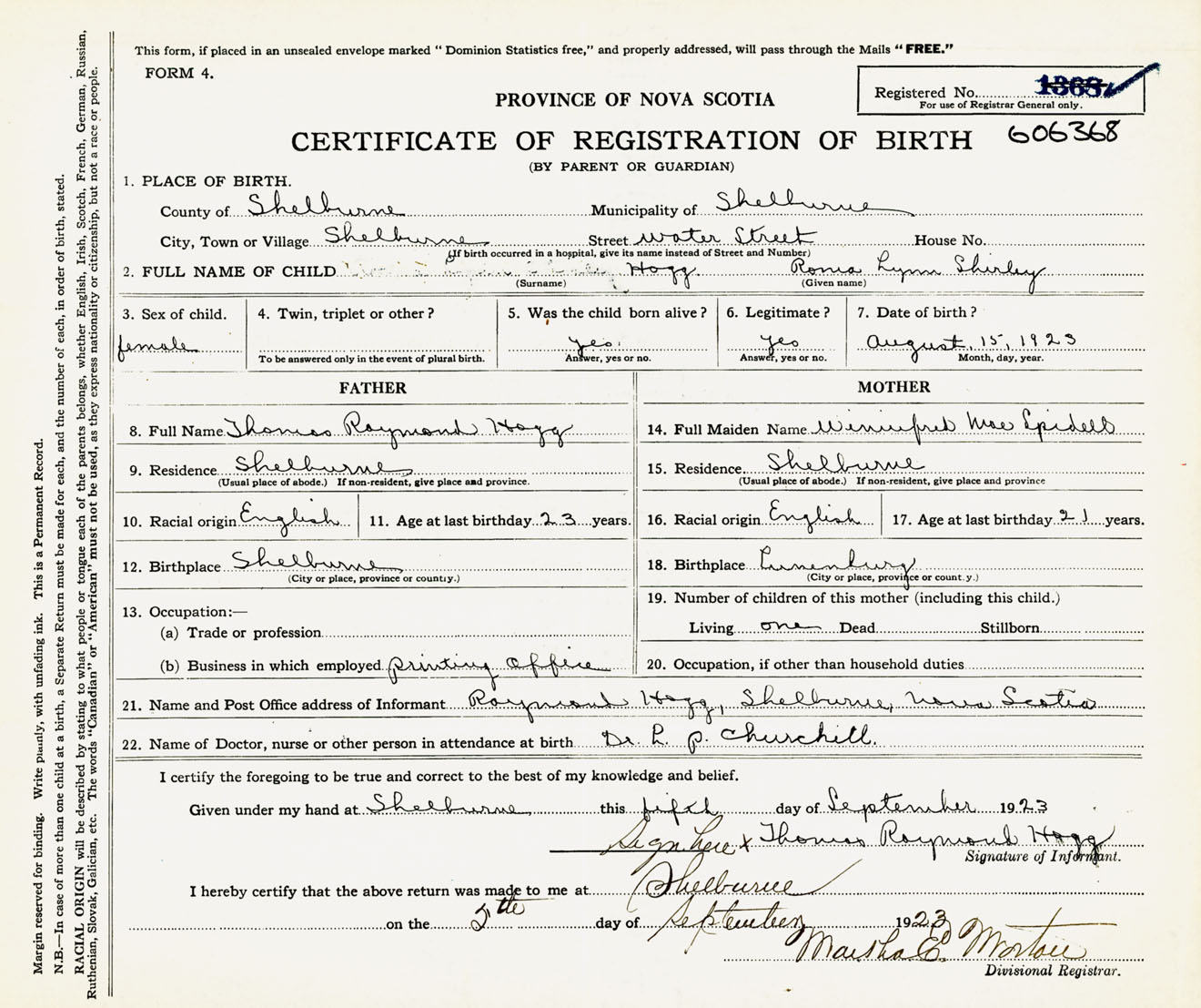 Female Birth Registration: Year: 1923 number: 60600368