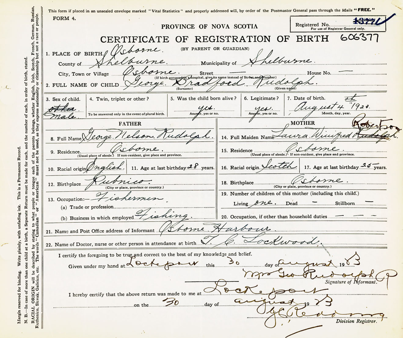 Male Birth Registration: Year: 1923 number: 60600377