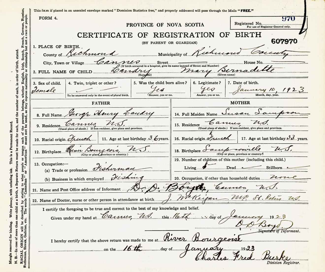 Female Birth Registration: Year: 1923 number: 60700970