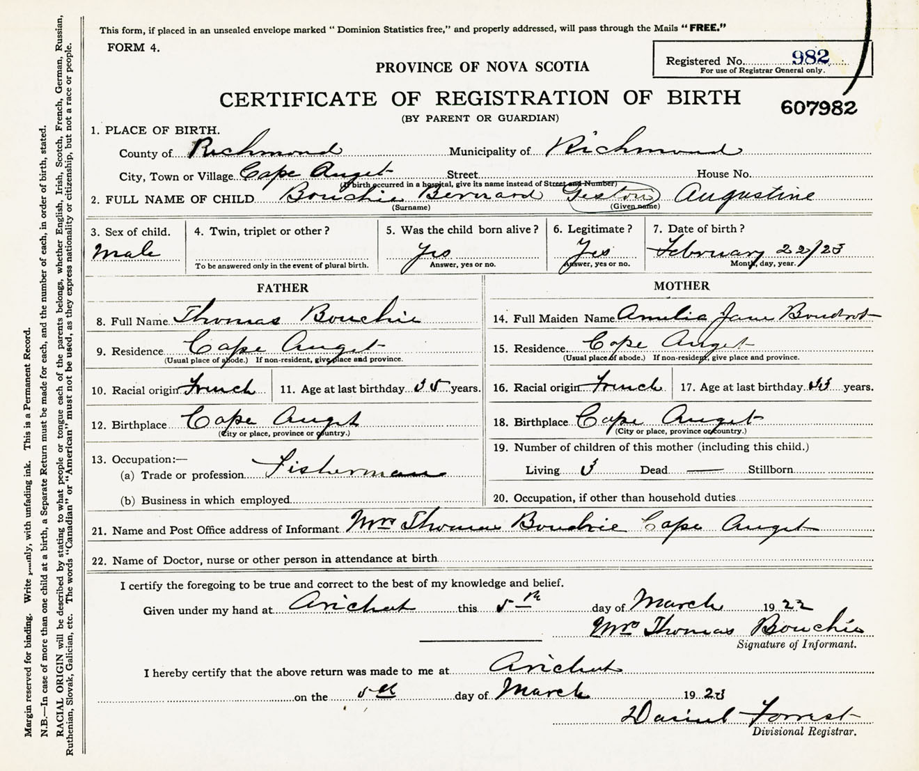 Male Birth Registration: Year: 1923 number: 60700982