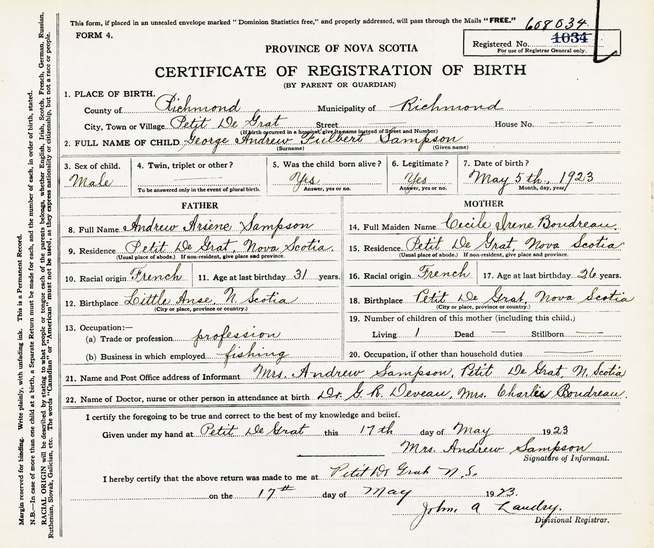 Male Birth Registration: Year: 1923 number: 60800034