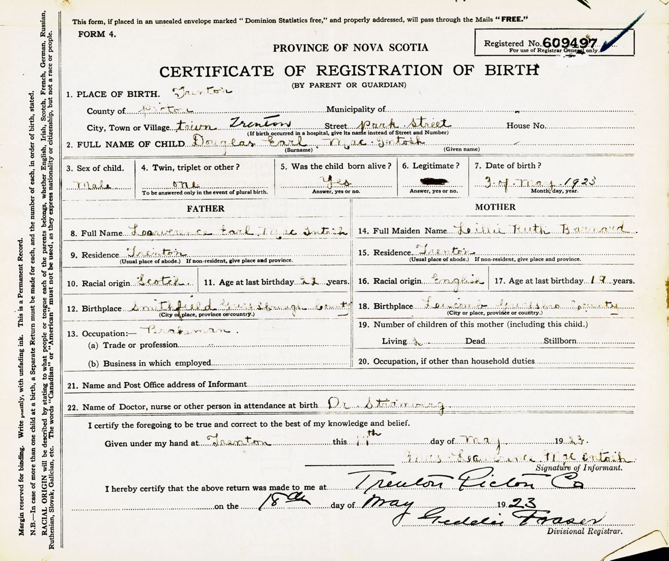 Male Birth Registration: Year: 1923 number: 60900497