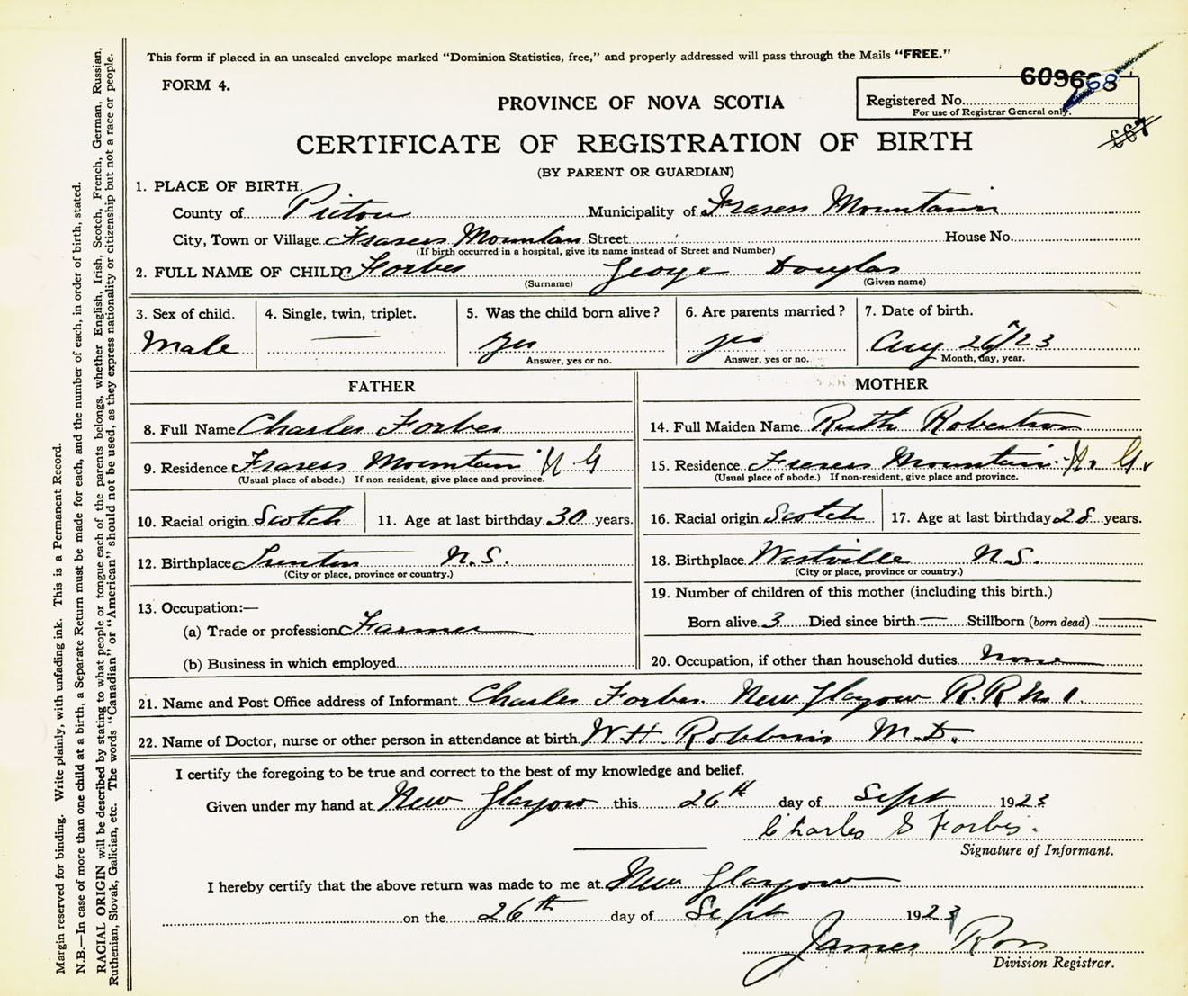 Male Birth Registration: Year: 1923 number: 60900668