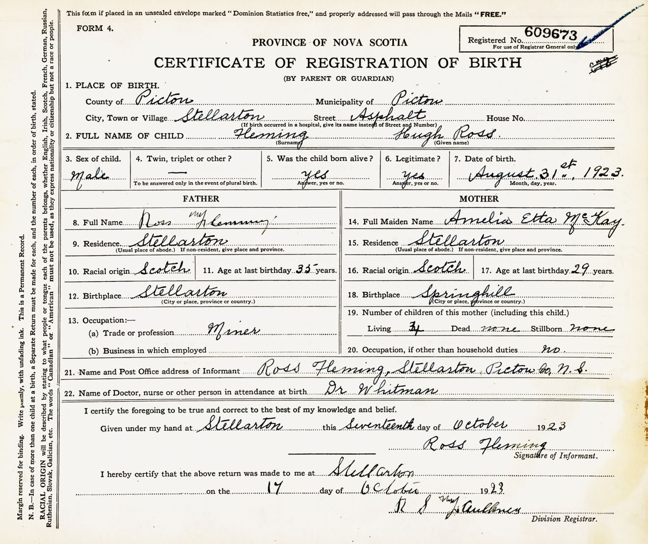 Male Birth Registration: Year: 1923 number: 60900673