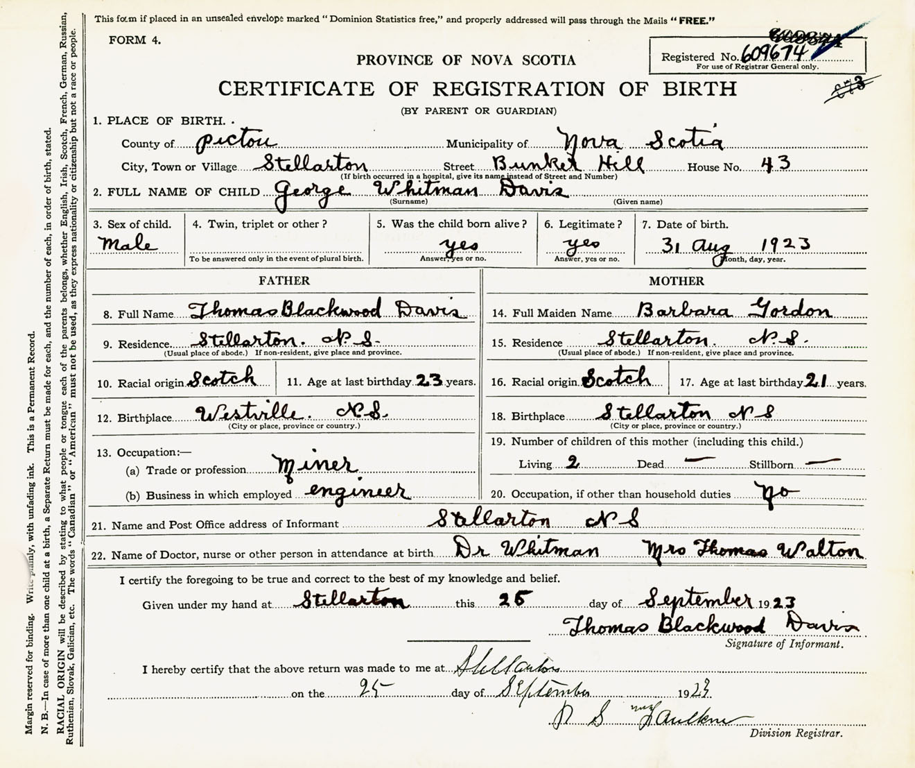 Male Birth Registration: Year: 1923 number: 60900674