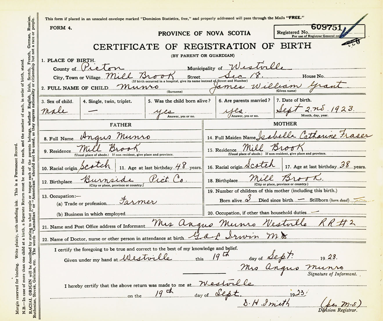 Male Birth Registration: Year: 1923 number: 60900751