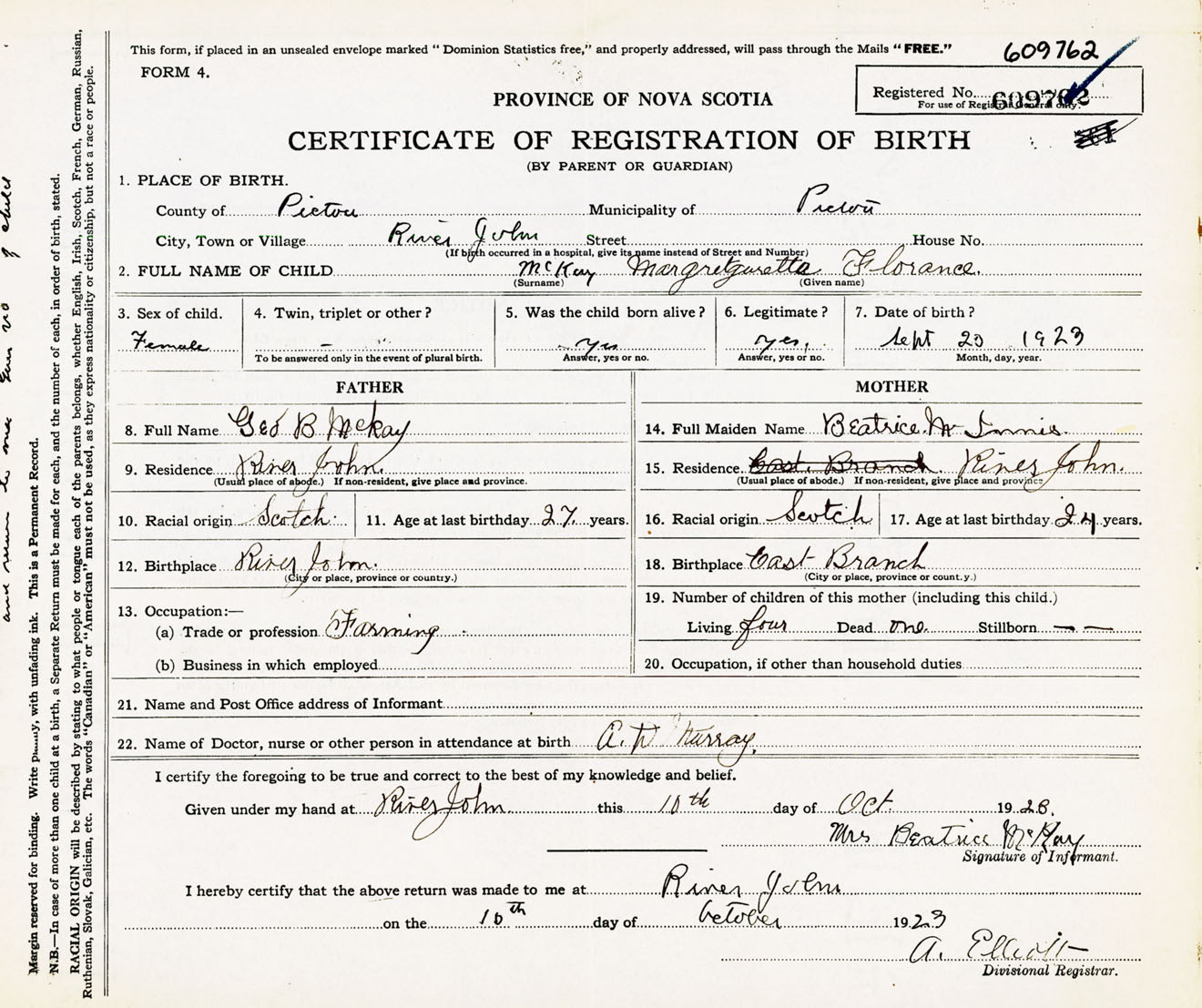 Female Birth Registration: Year: 1923 number: 60900762