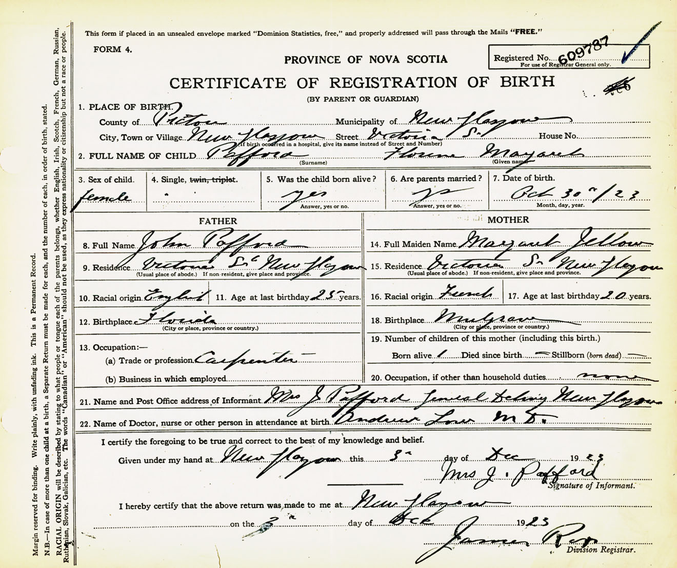 Female Birth Registration: Year: 1923 number: 60900787