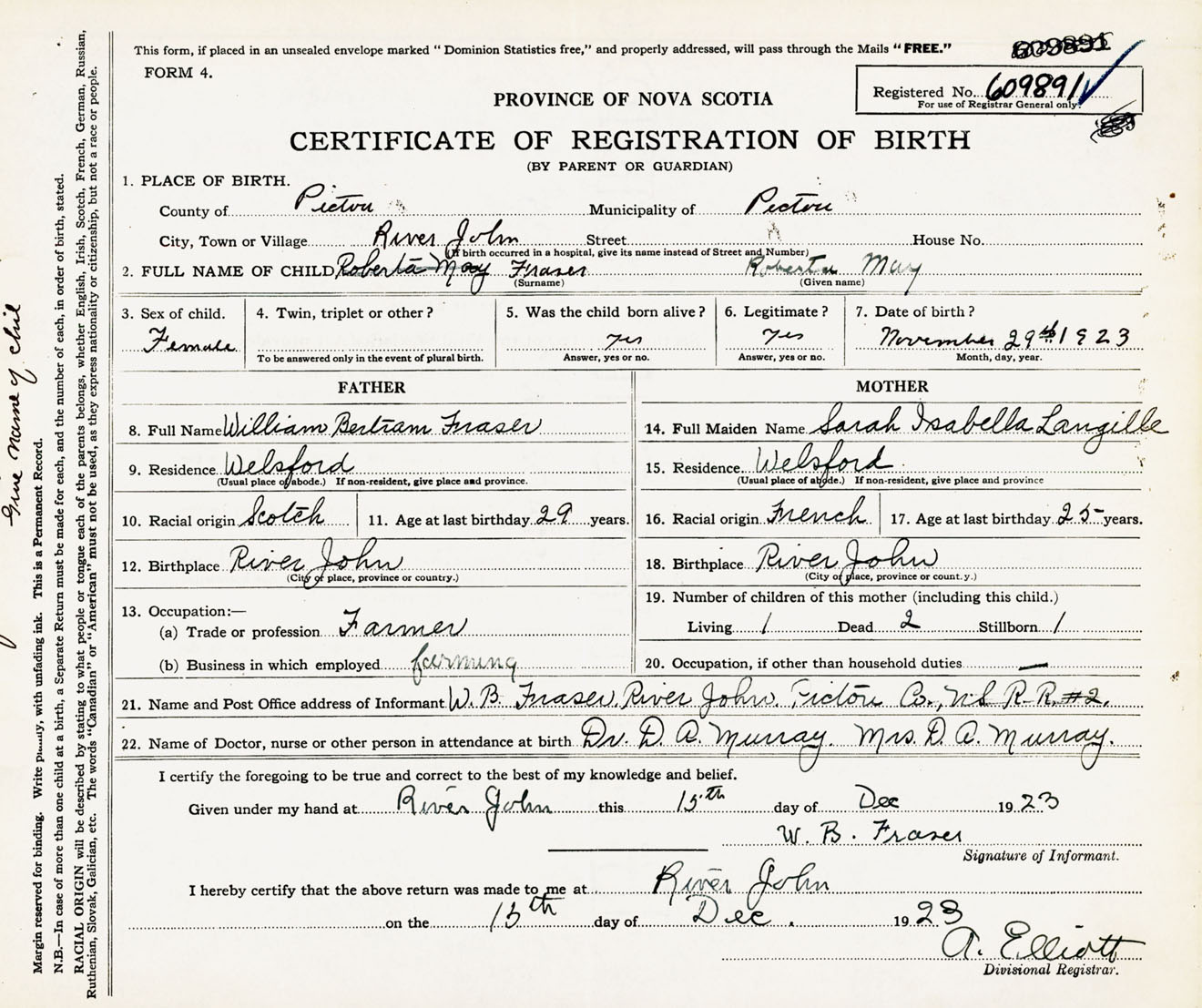 Female Birth Registration: Year: 1923 number: 60900891