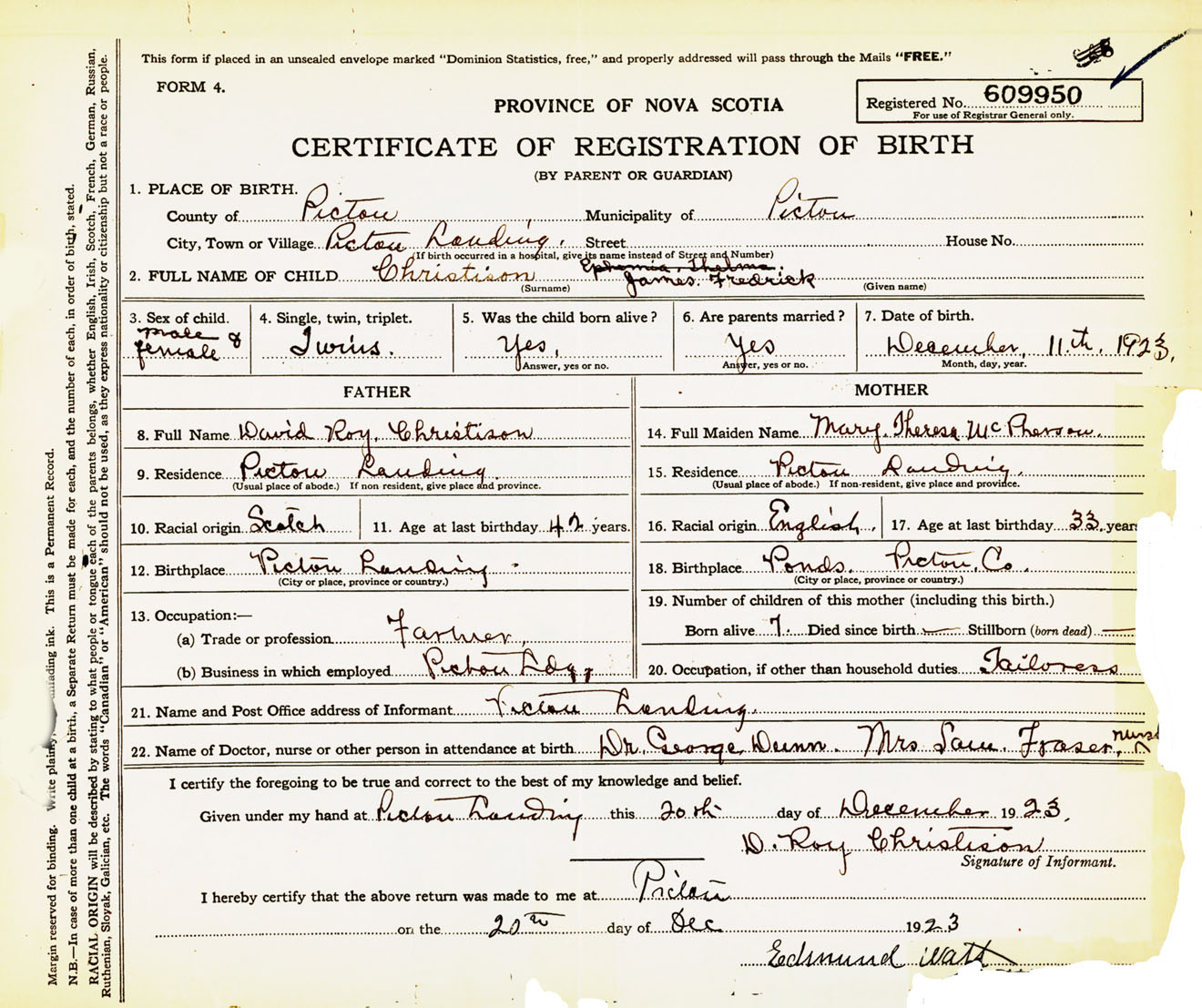 Nova Scotia Archives — https://archives.novascotia.ca/vital-statistics/birth/?ID=437096