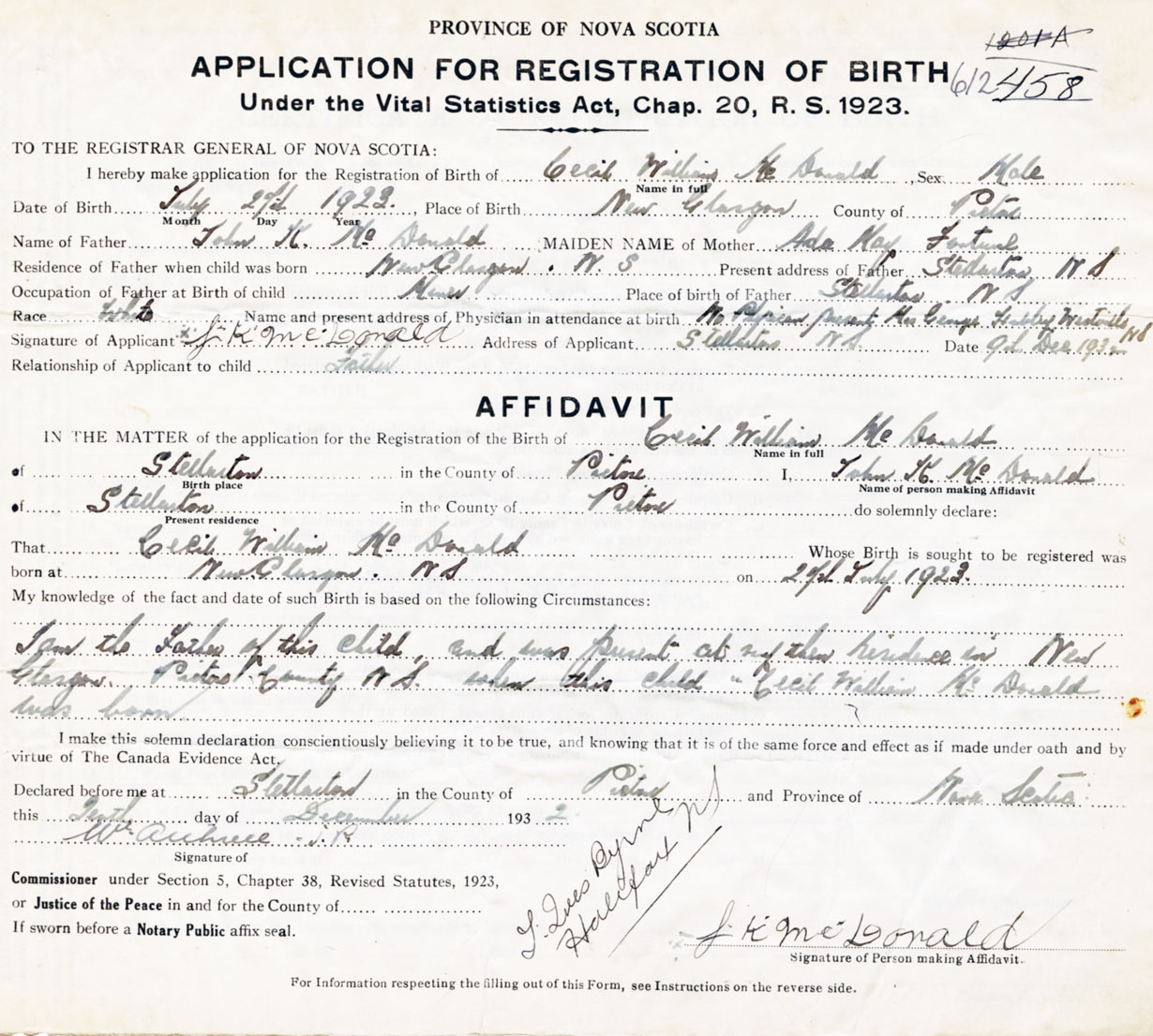 Male Birth Registration: Year: 1923 number: 61200458