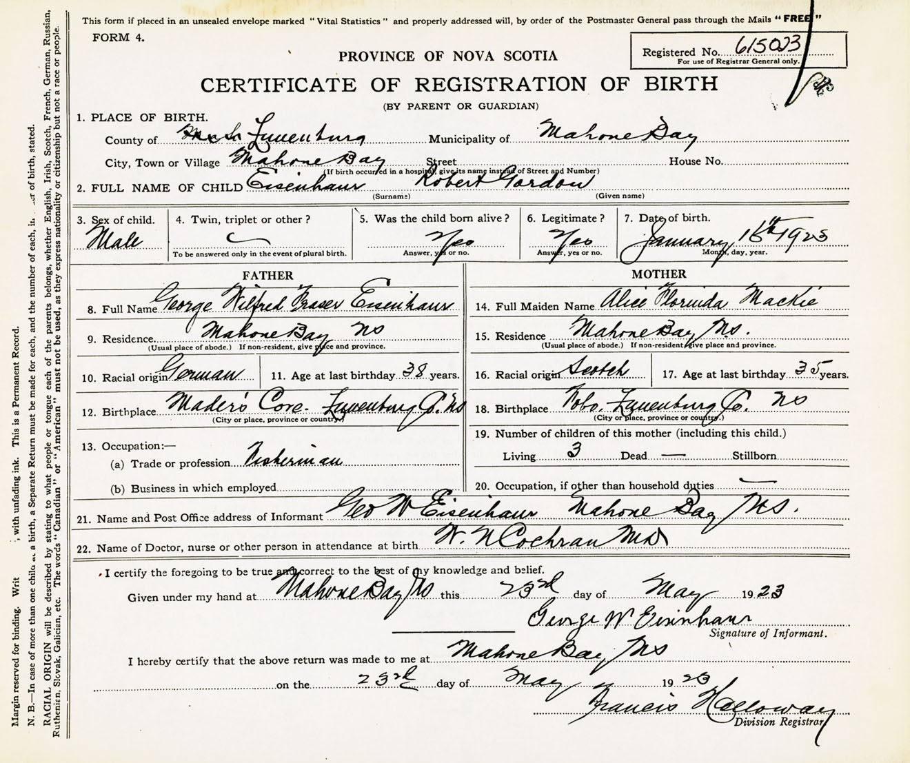 Male Birth Registration: Year: 1923 number: 61500023