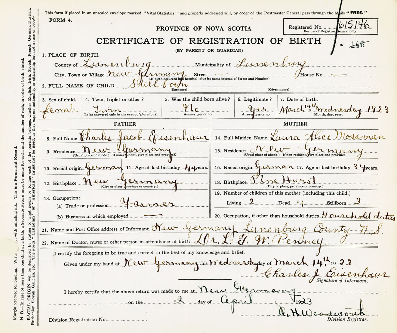 Female Birth Registration: Year: 1923 number: 61500146