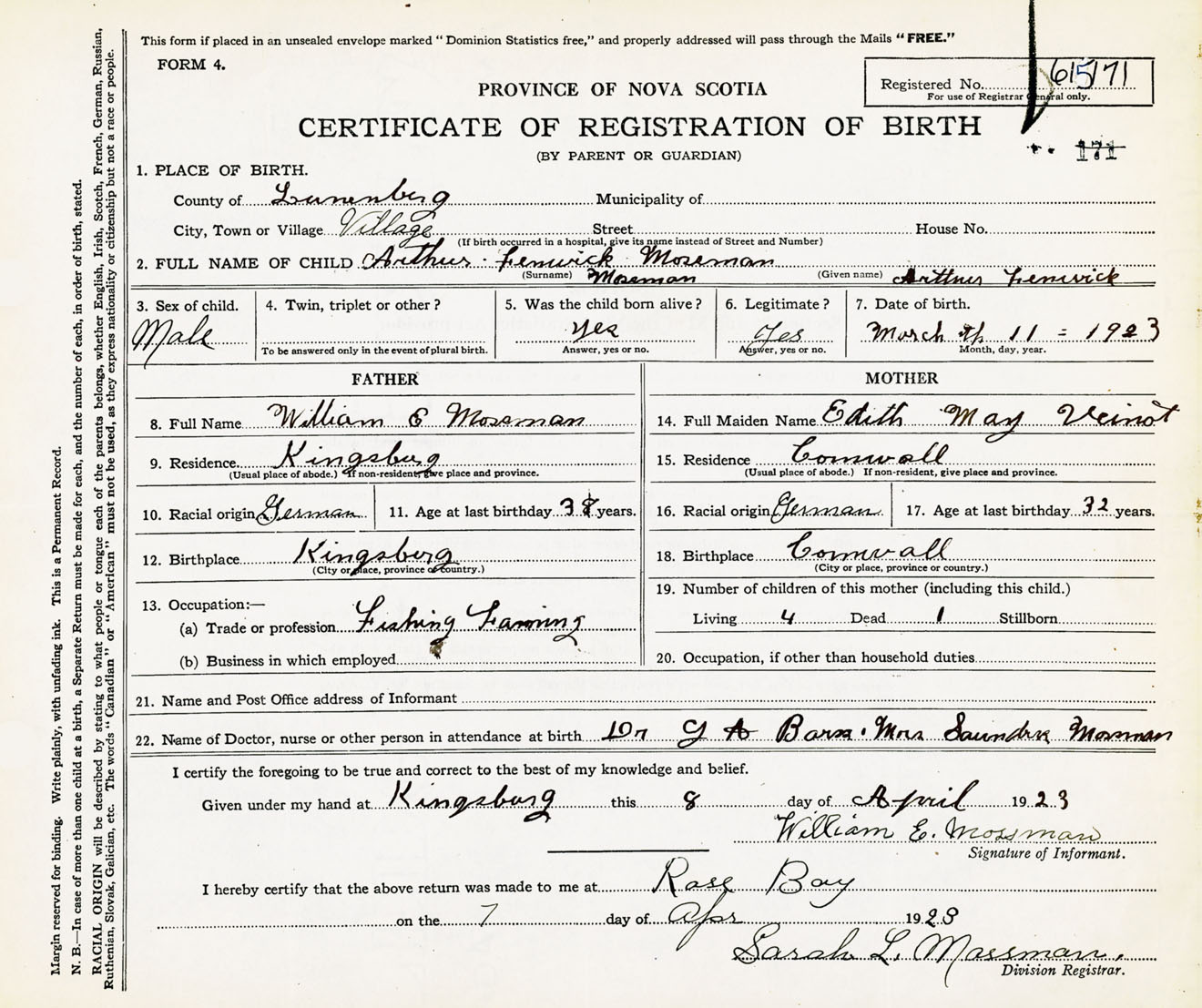 Male Birth Registration: Year: 1923 number: 61500171