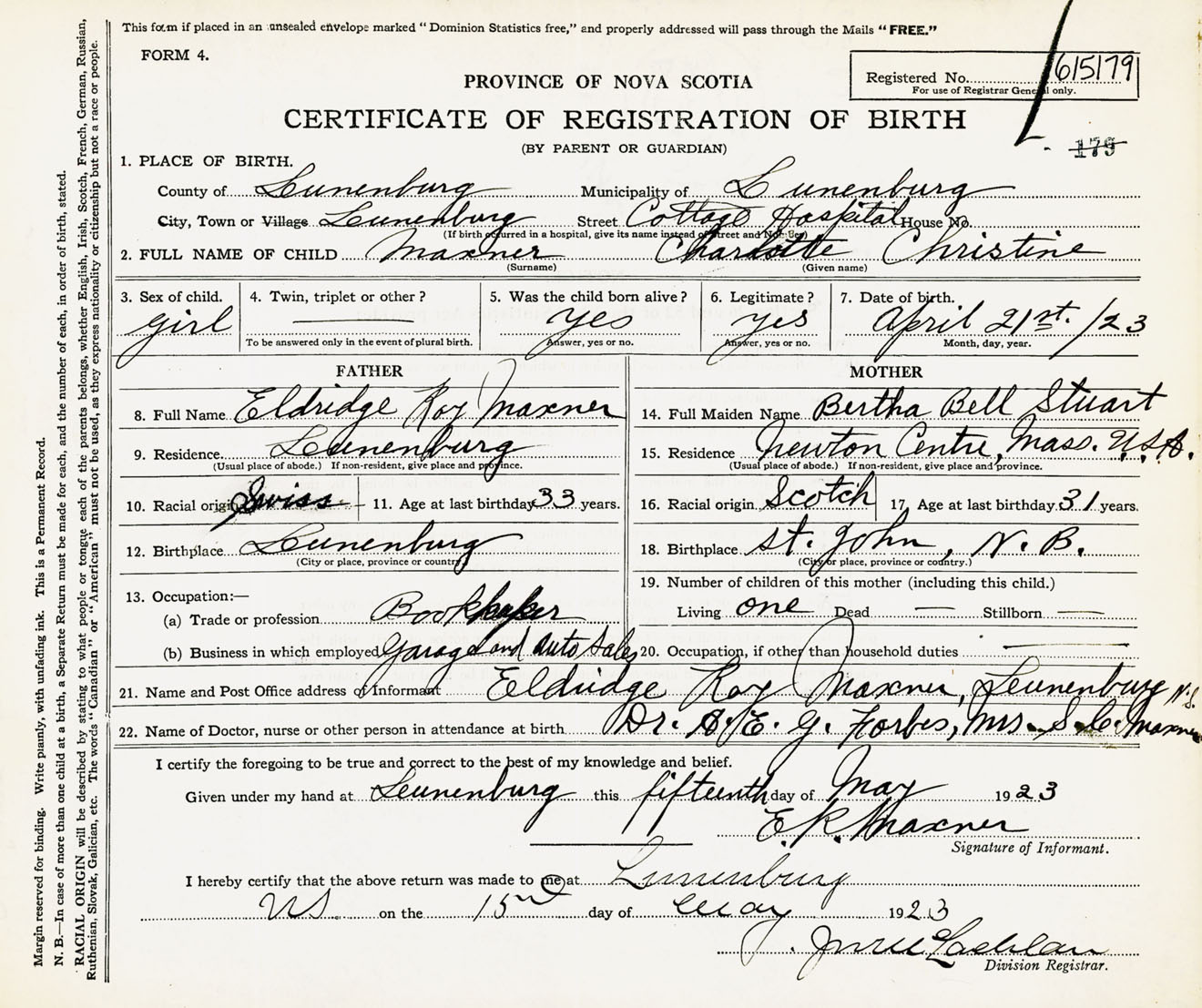 Female Birth Registration: Year: 1923 number: 61500179