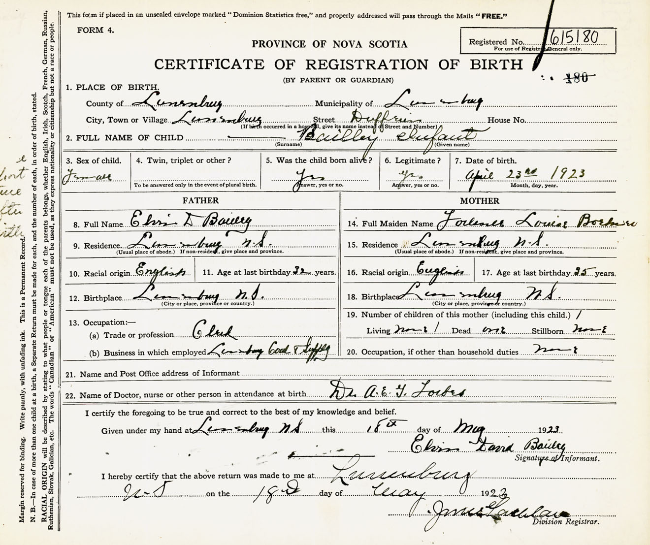 Female Birth Registration: Year: 1923 number: 61500180