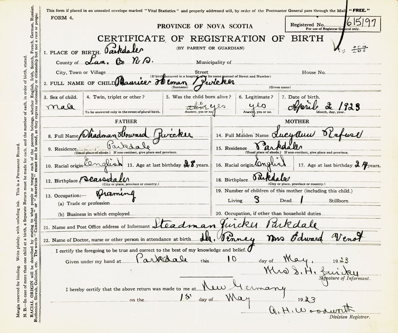Male Birth Registration: Year: 1923 number: 61500197