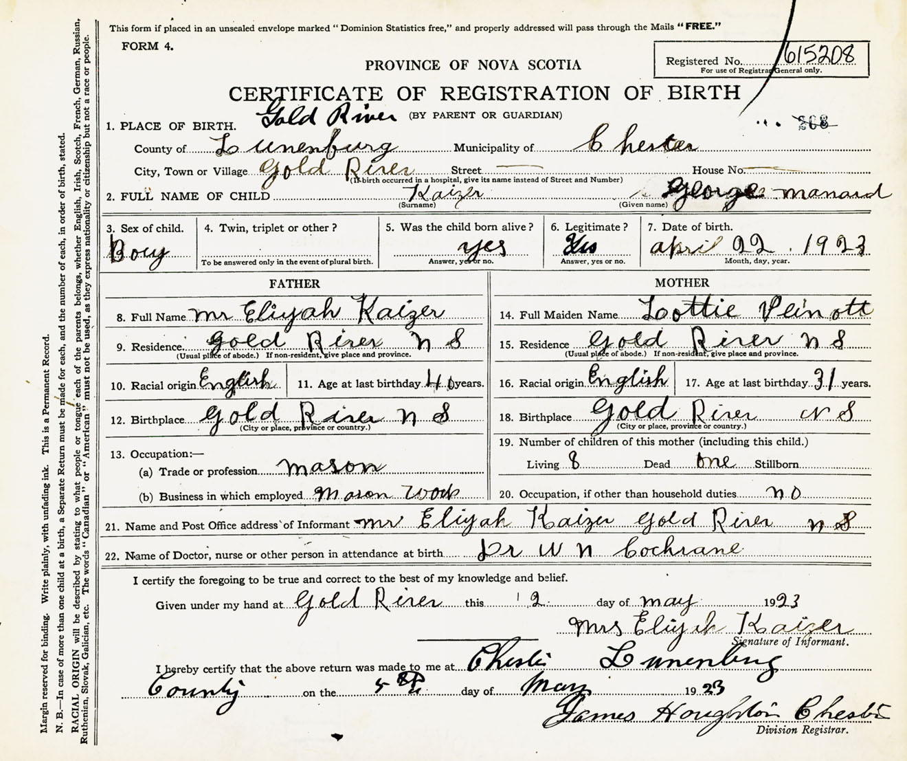 Male Birth Registration: Year: 1923 number: 61500208