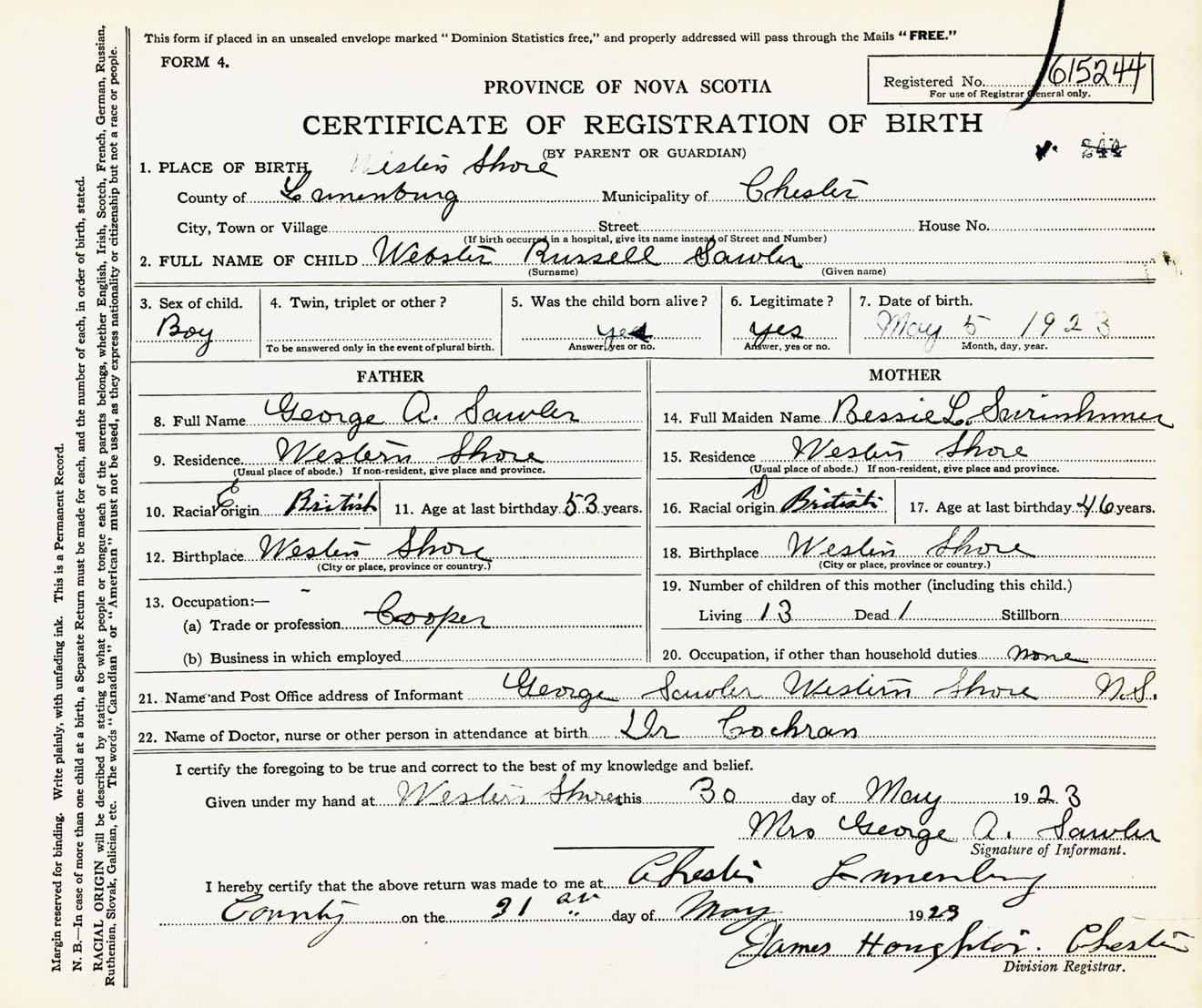Male Birth Registration: Year: 1923 number: 61500244