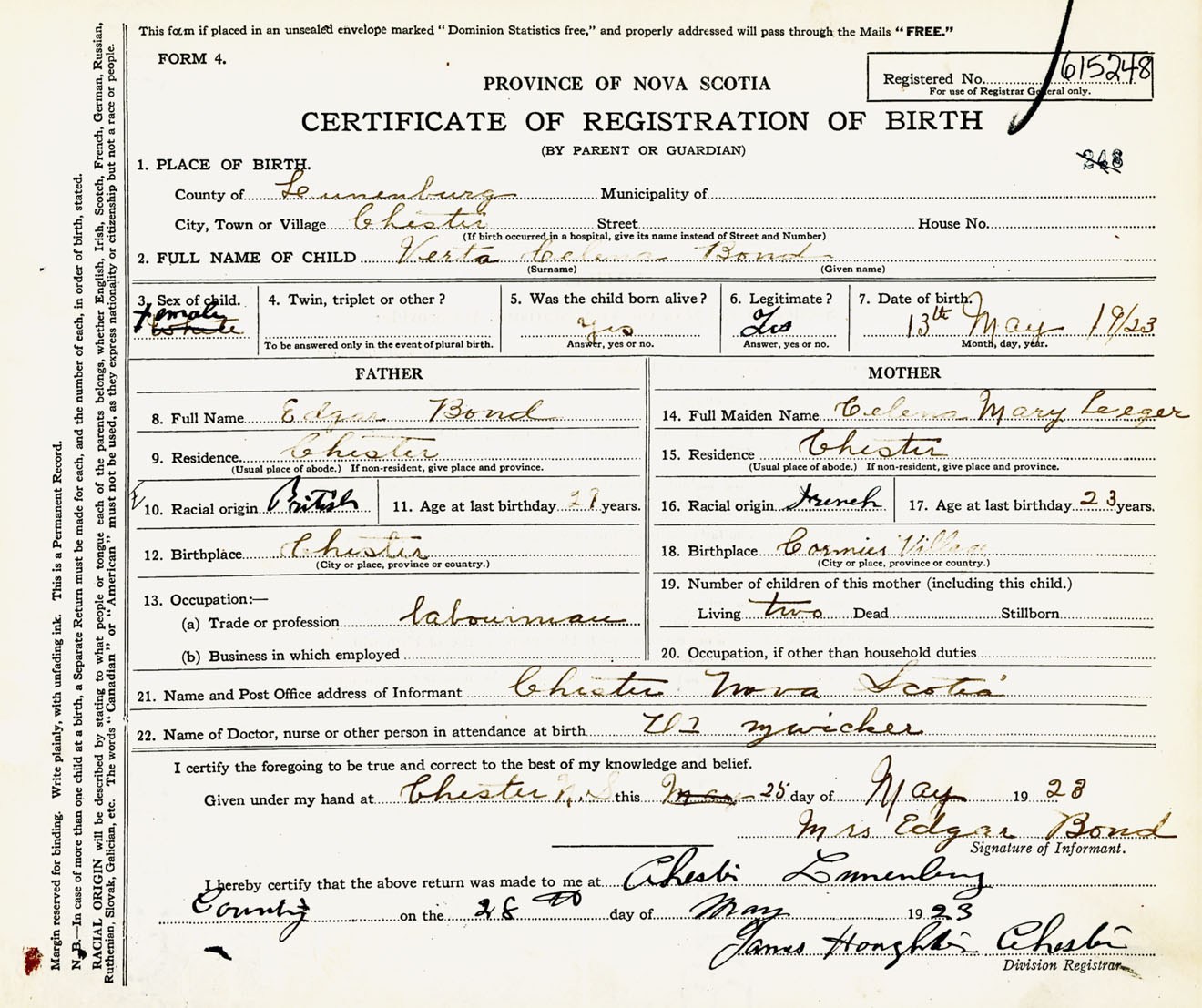 Female Birth Registration: Year: 1923 number: 61500248