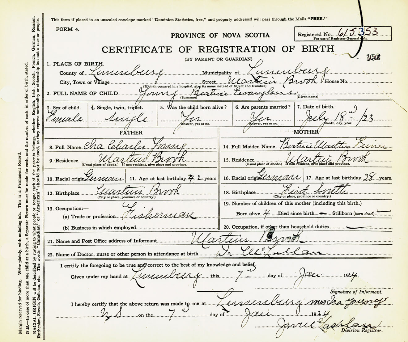 Female Birth Registration: Year: 1923 number: 61500353