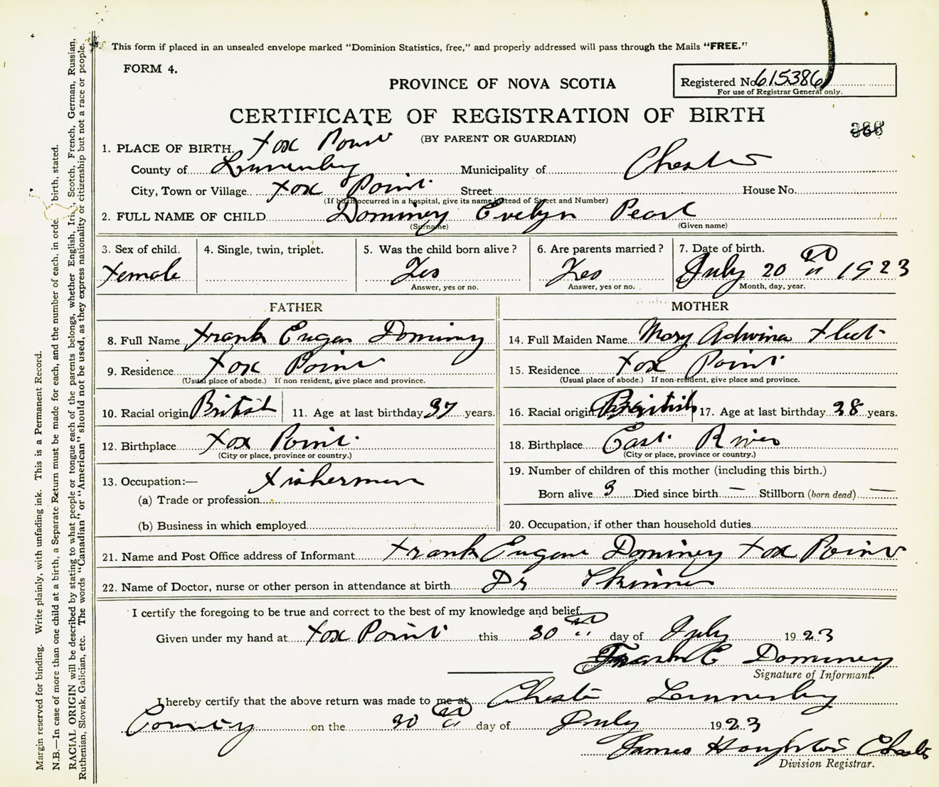 Female Birth Registration: Year: 1923 number: 61500386