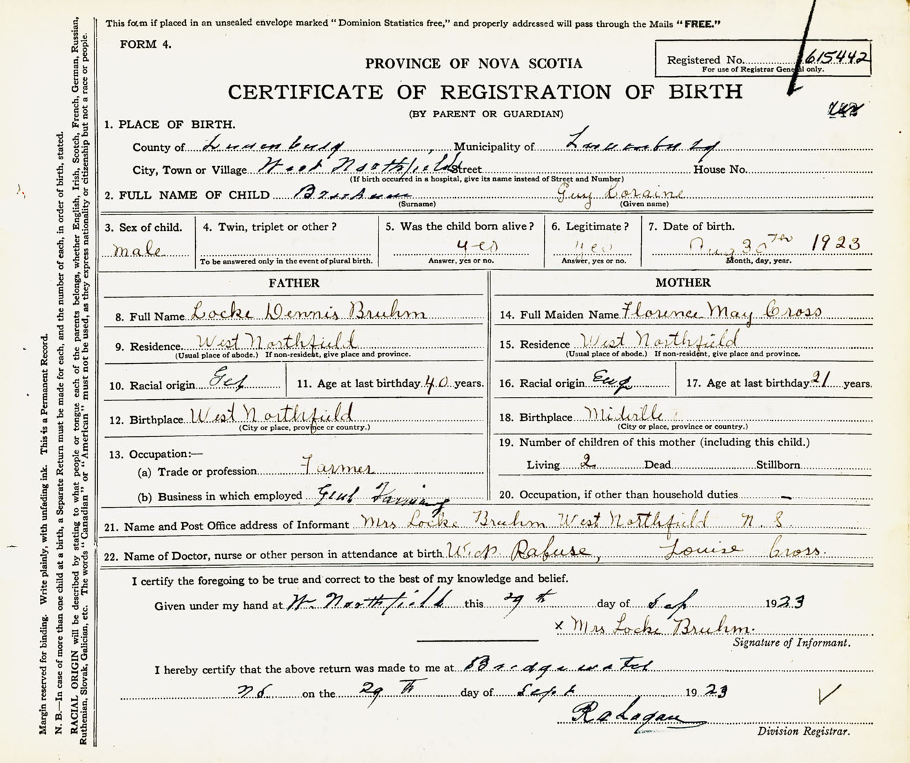 Male Birth Registration: Year: 1923 number: 61500442